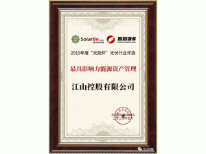 2020年3月31日,由索比光伏網(wǎng)、智新咨詢共同主辦的2019年度“光能杯”光伏行業(yè)評選頒獎盛典圓滿落下帷幕。江山控股有限公司憑借出色的品質(zhì)與服務(wù)、強(qiáng)大的創(chuàng)新力、卓越的品牌影響力,榮獲“2019年度最具影響力能源資產(chǎn)管理企業(yè)”大獎。