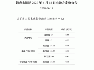 通威太陽能2020年4月18日電池片定價(jià)公告