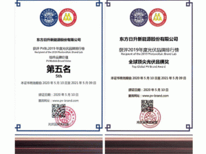 5月9日-10日,由世紀新能源網(wǎng)、光伏品牌實驗室(PVBL)聯(lián)合舉辦的CPC 2020第五屆世紀光伏大會在線上召開。會上,被業(yè)內(nèi)譽為“中國光伏市場晴雨表”的“PVBL年度光伏品牌排行榜”重磅發(fā)布,東方日升憑借硬核實力斬獲“組件品牌價值第五名”“全球頂尖光伏品牌獎”“科技創(chuàng)新獎”“電站投資商品牌價值第九名”四項大獎。