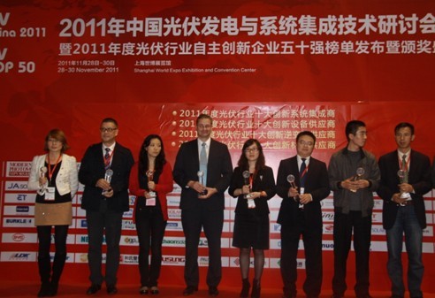 由國(guó)家電網(wǎng)、中國(guó)電力科學(xué)研究院新能源研究所、中國(guó)電工技術(shù)學(xué)會(huì)、教育部光伏系統(tǒng)工程研究中心、中國(guó)建筑設(shè)計(jì)研究院建筑節(jié)能與新能源工程中心、江蘇省光伏發(fā)電系統(tǒng)集成工程技術(shù)研究中心聯(lián)合主辦,《光伏雜志》、全球太陽能光伏網(wǎng)牽頭承辦的“2011年度光伏行業(yè)創(chuàng)新企業(yè)50強(qiáng)”評(píng)選活動(dòng)于2011年11月28日,在上海世博展覽館隆重舉行。