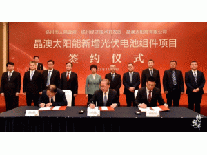 1月23日,晶澳太陽能新增光伏電池組件項(xiàng)目在揚(yáng)州正式簽約,市長張寶娟出席簽約儀式并致辭。晶澳集團(tuán)總裁牛新偉,市委常委、組織部部長焦慶標(biāo),副市長方桂林,市政府秘書長尤在晶參加活動。據(jù)悉,晶澳集團(tuán)擬在揚(yáng)投資100億元,建設(shè)高效光伏電池和組件項(xiàng)目,一期項(xiàng)目總投資60億元,重點(diǎn)建設(shè)10GW電池和6GW組件生產(chǎn)線,預(yù)計(jì)2021年建