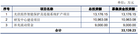 快可電子原擬在上交所科創(chuàng)板公開發(fā)行股票不超過1600萬股,占發(fā)行后總股本的比例不低于25%,擬募集資金3.31億元,分別用于“光伏組件智能保護(hù)及連接系統(tǒng)擴(kuò)產(chǎn)項目”、“研發(fā)中心建設(shè)項目”、“補(bǔ)充流動資金”。