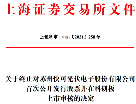 據(jù)上交所官網(wǎng)近日消息,上交所決定終止對蘇州快可光伏電子股份有限公司(以下簡稱“快可電子”)首次公開發(fā)行股票并在科創(chuàng)板上市的審核。