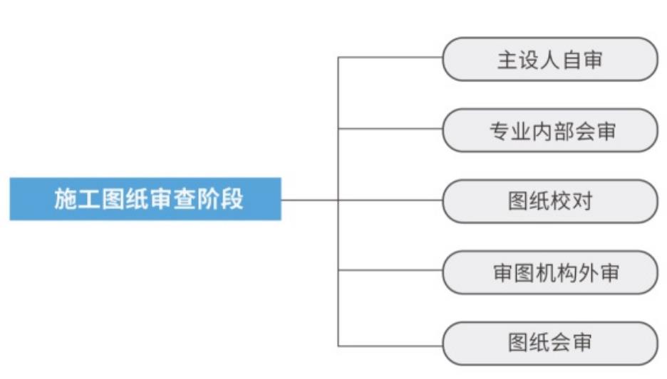 主要任務(wù)有主設(shè)人自審、專業(yè)內(nèi)部互審、圖紙校對、審圖機(jī)構(gòu)外審以及圖紙會審,詳見下圖: