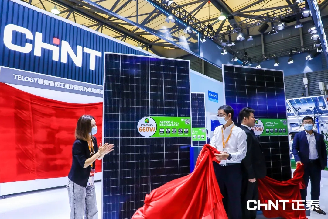 6月3日,SNEC開展首日,在正泰新能源展臺(W1-560),新一代ASTRO 6組件新品、TELOGY泰集雀羽工商業(yè)建筑光電屋面系統(tǒng)新品震撼發(fā)布。TELOGY泰集鷹眼地面跟蹤系統(tǒng)、戶用光伏、綜合能源、智能運維、一站式儲能系統(tǒng)解決方案等最新成果重裝亮相。并與TüV萊茵舉行授證儀式,與CTC合作簽約。另有TELOGY 泰集駝峰儲能系統(tǒng)新品在正泰電源展臺(E7-360)發(fā)布,強勢吸睛,圈粉無數(shù)。