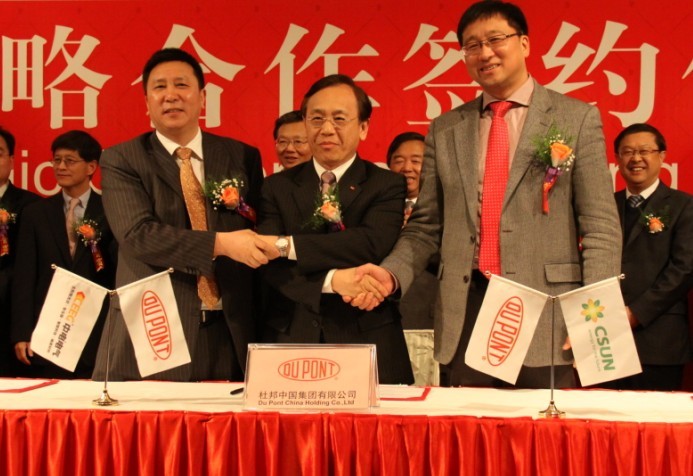 杜邦大中國區(qū)總裁蘇孝世先生表示:“這一協(xié)議的簽署將進一步拓展杜邦與中電電氣集團以及中電光伏的戰(zhàn)略合作關(guān)系。這不僅有利于深化我們的長期伙伴關(guān)系,也有利于國內(nèi)相關(guān)產(chǎn)業(yè)和社會的發(fā)展。杜邦公司致力于發(fā)揮自身在多個領(lǐng)域內(nèi)的科學(xué)專長,支持合作伙伴的快速成長!