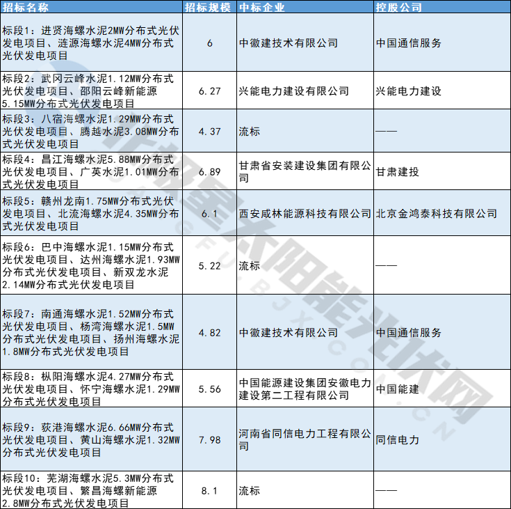 4月13日,公司啟動進賢海螺、漣源海螺、武岡云峰、邵陽云峰、八宿海螺、騰越水泥、昌江海螺、廣英水泥、贛州龍南、北流海螺、巴中海螺、達州海螺、新雙龍、南通海螺、楊灣海螺、揚州海螺、樅陽海螺、懷寧海螺、荻港海螺、黃山海螺、蕪湖海螺、繁昌海螺22個分布式光伏發(fā)電工程總承包(EPC)項目,招標規(guī)模61.31MW。