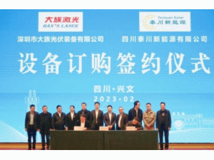 2月17日,大族激光與四川泰川新能源有限公司(以下簡(jiǎn)稱“泰川新能源”)簽訂光伏設(shè)備訂購(gòu)合約暨光伏產(chǎn)業(yè)研究院授牌儀式在四川宜賓興文隆重舉行。此次簽約,標(biāo)志著光伏產(chǎn)業(yè)戰(zhàn)略合作正式進(jìn)入“實(shí)操”階段,將有效推進(jìn)雙方在先進(jìn)光伏技術(shù)、光伏產(chǎn)研建設(shè)、光伏產(chǎn)業(yè)培育等多個(gè)領(lǐng)域全面深入發(fā)展。