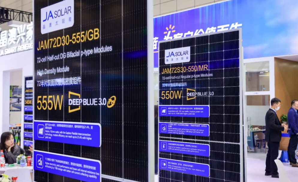 在本次展會中,晶澳科技展出了DeepBlue 3.0系列產(chǎn)品。DeepBlue 3.0 組件采用了高效p型PERCIUM+電池技術(shù)、摻鎵硅片技術(shù)、半片電池技術(shù)、MBB技術(shù)等高效率和低衰減技術(shù),在組件可靠性能、效率(功率)和發(fā)電性能等方面具有突出的優(yōu)勢,自從2020年進(jìn)入市場以來,得到了客戶和三方機(jī)構(gòu)的一致認(rèn)可。