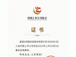 11月16日,由中國上市公司協(xié)會主辦的中國上市公司可持續(xù)發(fā)展大會在北京市成功舉行。中國上市公司協(xié)會發(fā)布了包括《中國上市公司ESG最佳實踐案例》在內(nèi)的多個報告,并為眾多行業(yè)龍頭企業(yè)頒發(fā)了“上市公司ESG最佳實踐案例”入選證書。晶澳科技在征集案例中以“嚴(yán)守生態(tài)紅線,探索生態(tài)保護(hù)新路徑”先進(jìn)實踐脫穎而出,成功獲評“2023年上市公司ESG最佳實踐案例”。
