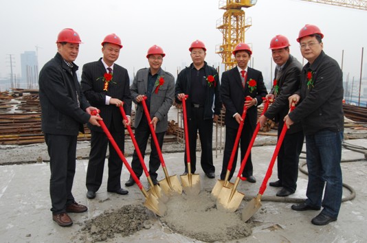 11月9日上午10時(shí)30分,位于東湖新技術(shù)開發(fā)區(qū)東二產(chǎn)業(yè)園的三工光電設(shè)備制造基地施工現(xiàn)場(chǎng)禮炮齊鳴、喜慶歡騰。在東湖開發(fā)區(qū)及三工光電各級(jí)領(lǐng)導(dǎo)的支持和關(guān)心下,經(jīng)過項(xiàng)目組和各參建單位的共同努力,三工光電設(shè)備制造基地大樓主體結(jié)構(gòu)施工如期完成并隆重舉行了封頂儀式。武漢三工光電設(shè)備制造有限公司總經(jīng)理何成鵬、武漢大學(xué)科技園總經(jīng)理宋宏杰、武漢慧科投資有限公司總經(jīng)理蔣銀華等相關(guān)領(lǐng)導(dǎo)出席了該儀式,熱烈祝賀三工光電設(shè)備制造基地項(xiàng)目喜封金頂。
