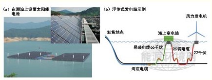 在湖泊等的水面上設置太陽能電池的舉動日趨活躍(a)。在水深較深的日本海域,要從浮體式可再生能源發(fā)電站為陸地供電,需要使用吊裝電纜(b)。(攝影:LSIS,圖:古河電氣工業(yè))