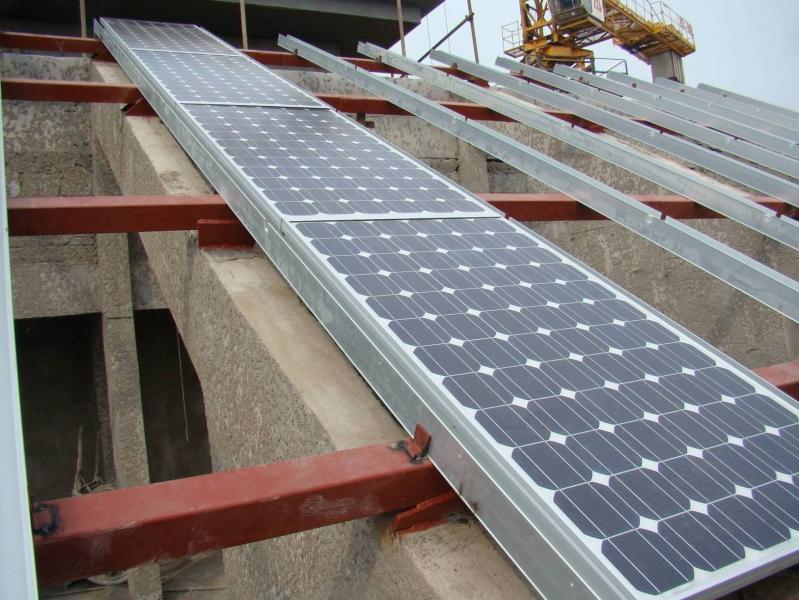 為了加速我國(guó)光伏產(chǎn)業(yè)的健康發(fā)展和國(guó)內(nèi)市場(chǎng)的開(kāi)拓,我國(guó)政府2009年相出臺(tái)了一系列的扶持政策,如財(cái)政部于09年3月26日發(fā)布《關(guān)于加快推進(jìn)太陽(yáng)能光電建筑應(yīng)用的實(shí)施意見(jiàn)》、財(cái)政部、科技部、國(guó)家能源局聯(lián)合印發(fā)了《關(guān)于實(shí)施金太陽(yáng)示范工程的通知》,建筑節(jié)能名列其中并優(yōu)先支持太陽(yáng)能光伏組件應(yīng)與建筑物實(shí)現(xiàn)構(gòu)件化、一體化項(xiàng)目;優(yōu)先支持并網(wǎng)式太陽(yáng)能光電建筑應(yīng)用項(xiàng)目。本高平整度一體化太陽(yáng)能發(fā)電整體屋頂技術(shù),是為了滿(mǎn)足國(guó)家相關(guān)抉持政策的要求而專(zhuān)門(mén)開(kāi)發(fā)的技術(shù),它采用結(jié)構(gòu)設(shè)計(jì)的方法把太陽(yáng)電池組件發(fā)電方陣形成一個(gè)整體屋頂建筑構(gòu)件來(lái)替代傳統(tǒng)建筑物南坡屋頂,實(shí)現(xiàn)了太陽(yáng)能發(fā)電和建筑的完美結(jié)合。該技術(shù)所使用的太陽(yáng)電池組件與現(xiàn)行的太陽(yáng)電池組件不同,它的邊框結(jié)構(gòu)作了較大的改變,變?cè)信c支架的縱向固定為橫向固定,并實(shí)現(xiàn)太陽(yáng)電池組件上下之間的鉸聯(lián)達(dá)到避雨的作用。太陽(yáng)電池組件嵌鑲在特制的固定在建筑屋頂橫梁上的排水槽上。該高平整度一體化太陽(yáng)能發(fā)電整體屋頂,其結(jié)構(gòu)之簡(jiǎn)單、功能之完善、安裝之高效、效果之完美不愧為是一種真正意義上的一體化太陽(yáng)發(fā)電建筑結(jié)構(gòu)件,是一種真正的BIPV建筑技術(shù)。該技術(shù)目前己完成了科技查新報(bào)告、企業(yè)技術(shù)標(biāo)準(zhǔn)、質(zhì)量檢測(cè)報(bào)告、科學(xué)技術(shù)成果鑒定、發(fā)明專(zhuān)利的申請(qǐng)、評(píng)估報(bào)告和規(guī)模化示范工程。