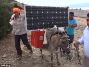 土耳其農(nóng)夫在驢背上放置太陽能電池板,在放牧?xí)r可采集太陽能為隨身攜帶的筆記本電腦和手機(jī)充電。