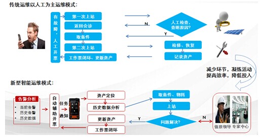 以光伏終端為核心的移動運維也是一個亮點。該移動運維模式,可以與生產(chǎn)管理系統(tǒng)無縫對接,簡化了傳統(tǒng)運維模式中大量的手工報表及人工處理環(huán)節(jié);同時前后方協(xié)同、空地協(xié)同運維,后方的專家通過視頻實時遠程診斷掌握現(xiàn)場的情況、指導(dǎo)一線的工作人員處理故障和問題。