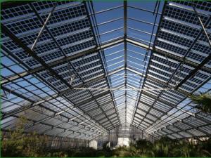 光伏農(nóng)業(yè)大棚是集太陽能光伏發(fā)電、智能溫控系統(tǒng)、現(xiàn)代高科技種植為一體的溫室大棚,大棚采用鋼制骨架,上覆蓋太陽能光伏組件,同時保證太陽能光伏發(fā)電和整個溫室大棚農(nóng)作物的采光需求。太陽能光伏所發(fā)電量,可以支持大棚的灌溉系統(tǒng),對植物進行補光、解決溫室大棚冬季供暖需求,提高大棚溫度,促使農(nóng)作物快速生長。