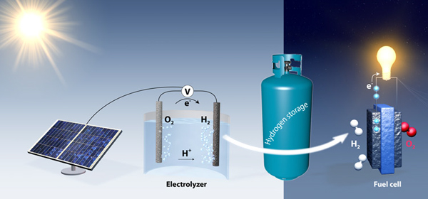現(xiàn)在市面上還沒(méi)有大規(guī)模的具有良好性?xún)r(jià)比的方案來(lái)存儲(chǔ)太陽(yáng)能。斯坦福大學(xué)的研究人員認(rèn)為,高效電解可以通過(guò)把大量的水制成電池來(lái)儲(chǔ)存太陽(yáng)能,白天,通過(guò)太陽(yáng)能獲得的多余電力可以用于水分解來(lái)制備氫氣和氧氣,重組這些氣體再產(chǎn)生電力供夜間使用。