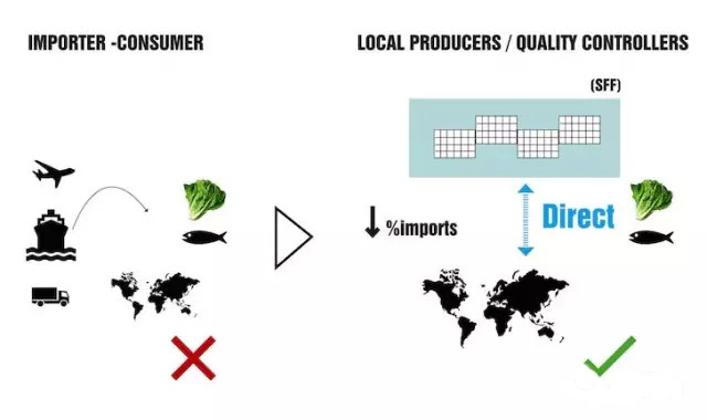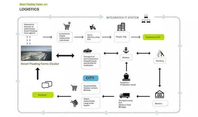 農場將被安裝在附近的水域中,以減少食品進口的依賴和食品運輸?shù)睦锍獭?br />