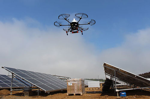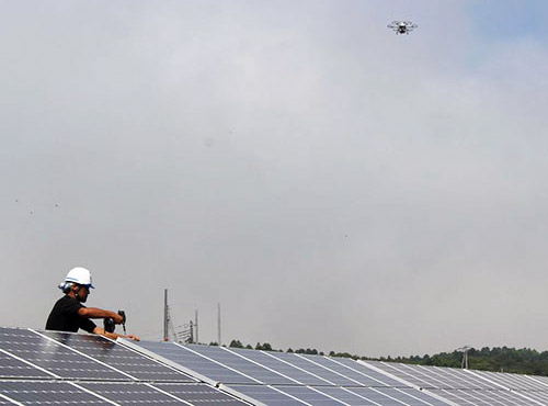 圖1:A-Style想客戶演示利用無(wú)人機(jī)拍攝太陽(yáng)能電池板