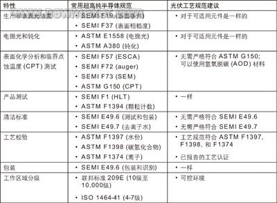 表1. 超高純和光伏元件制造協(xié)議比較