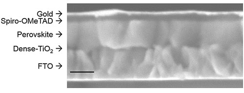 開發(fā)的鈣鈦礦太陽能電池的截面圖
