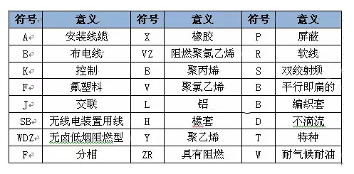 五、電纜產(chǎn)品型號中各部分代號及其含義