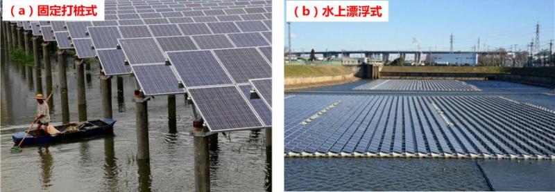 固定打樁方式通常用在淺水區(qū),如淺水魚(yú)塘、煤礦塌陷區(qū)、小型湖泊等,如圖2(a)。深水水域需考慮采用漂浮式安裝方式,如圖2(b)。目前固定打樁方式是主流應(yīng)用形式,成熟案例較多,漂浮式多為容量較小的示范項(xiàng)目。