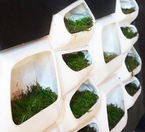 日前,西班牙加泰羅尼亞高級建筑學院的學生Elena Mitrofanova在其論文中提出一項以苔蘚為介質(zhì)的光伏發(fā)電系統(tǒng),直觀看來,是一組種植苔蘚的立面中空模塊化墻磚。