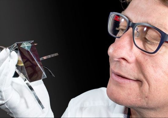 新裝置由嵌入棱鏡的四片迷你模塊結(jié)合而成(大小為28cm2),當陽光照射棱鏡的時候,會被分成四段輸入四聯(lián)接收器,從而增加了可從陽光中獲取到的能量。