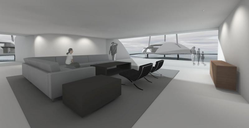 目前的Tidal House概念房屋有三層,包含客廳、飯廳、四個臥室和兩個浴室。它甚至可以延伸出一個露天平臺,供人們曬日光浴。特里稱,該房屋的側(cè)邊還有設(shè)置花園的空間。
