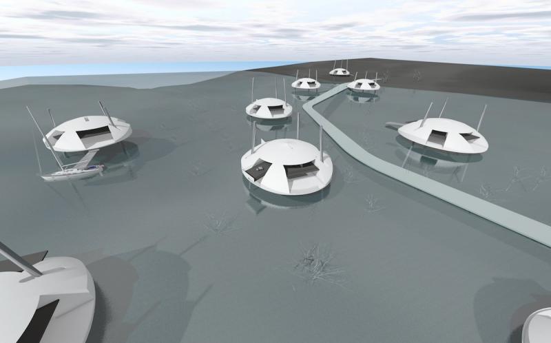 根據(jù)《自然氣候變化》(Nature Climate Change)的研究,未來100年,海平面上升可能將導(dǎo)致多達(dá)420萬美國人流離失所。不過,有一種浮動房屋或許可以幫助你在海上繼續(xù)安全地生活下去。位于加州的建筑公司Terry & Terry Architecture設(shè)計這種浮動房屋概念,它認(rèn)為浮動房屋有可能會成為房