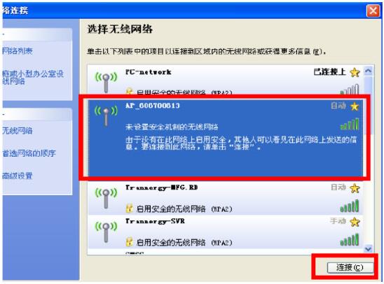 2、選擇無(wú)線網(wǎng)絡(luò)并點(diǎn)擊連接