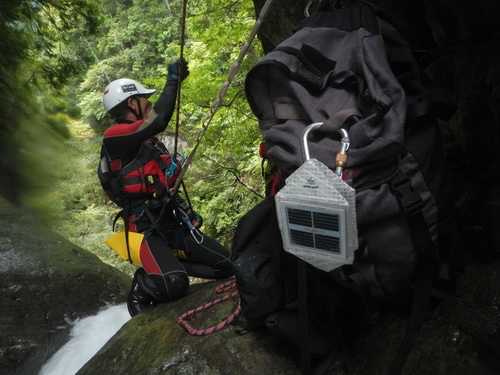 白天,通過背部的太陽能電池吸取陽光,