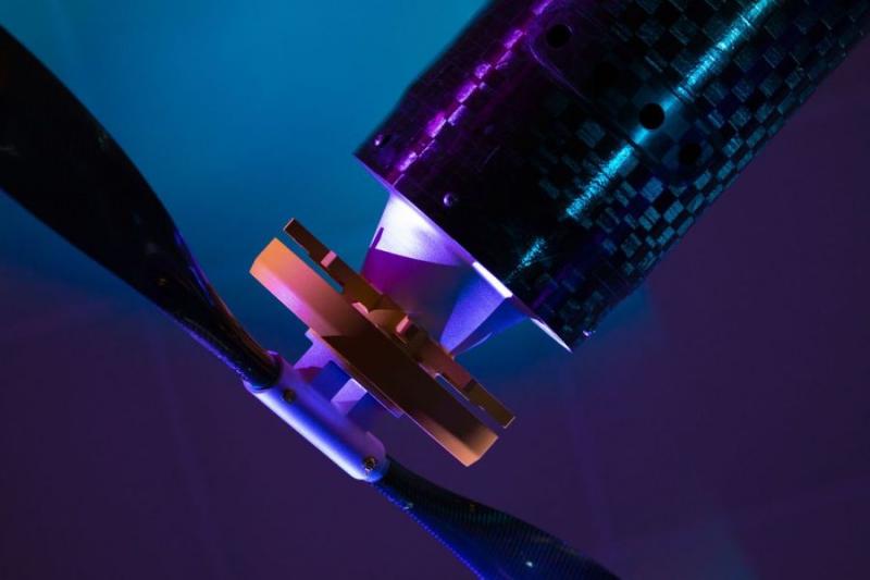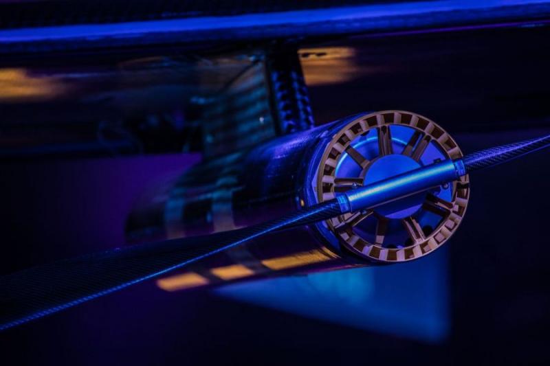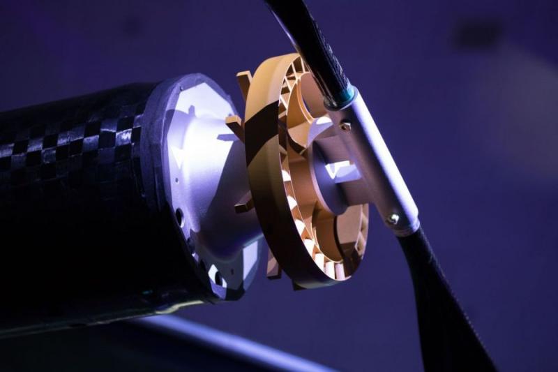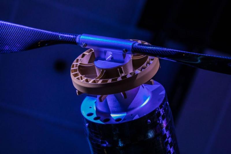 扎克伯格稱,Aquila無人機的通信激光器將能夠在飛行過程中足夠準(zhǔn)確地射中11英里以外的硬幣。圖為Aquila螺旋槳架構(gòu)近視圖,其零部件來自英國公司Rockwood Composites。