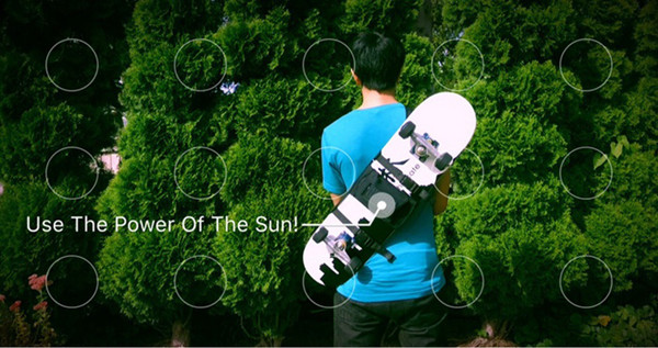 平時(shí)不使用滑板時(shí),把它背在背上,不僅可以靈活移動(dòng),還能隨時(shí)收集太陽(yáng)能,非常方便。