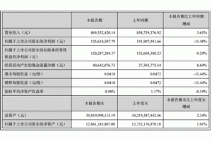 據太陽能4月27日發(fā)布的一季度業(yè)績報告顯示,一季度營業(yè)收入869,352,420.14元,同比增長3.65%;歸屬于上市公司股東的凈利潤為125,618,507.79元,同比下降11.48%。