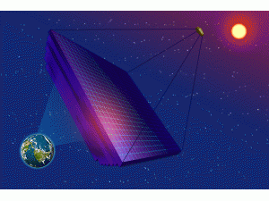 空間太陽(yáng)能電站,主要由太陽(yáng)能發(fā)電裝置、能量轉(zhuǎn)換和發(fā)射裝置、地面接收系統(tǒng)和轉(zhuǎn)換裝置組成。其主要工作原理是:太陽(yáng)能發(fā)電裝置將太陽(yáng)能轉(zhuǎn)化成為電能,再由能量轉(zhuǎn)換裝置將電能轉(zhuǎn)換成微波或激光等形式,并利用發(fā)射裝置向地面發(fā)送波束,之后由地面的接收系統(tǒng)接收這些波束,最后通過(guò)轉(zhuǎn)換裝置將其轉(zhuǎn)換成為電能接入電網(wǎng)。