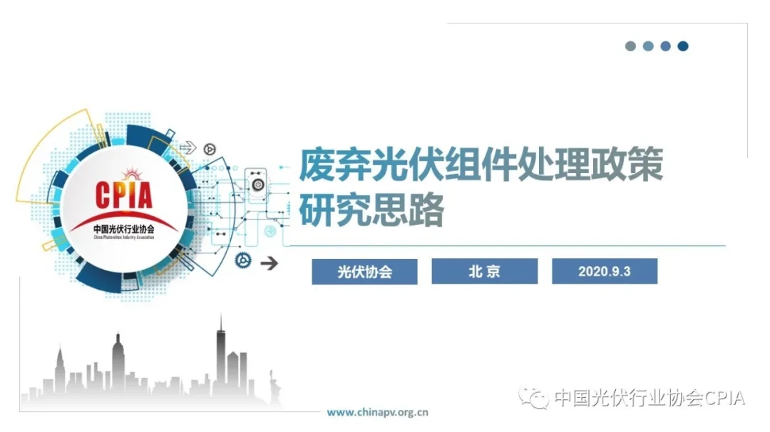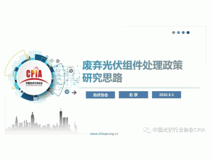 近日,在中國光伏行業(yè)協(xié)會主辦的“廢棄光伏組件線上研討會”上,中國光伏行業(yè)協(xié)會江華主任研究員作“廢棄光伏組件處理政策研究思路”的報告。PPT原文如下: