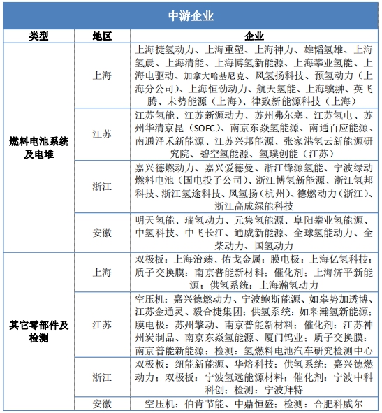 長三角地區(qū)在氫燃料電池領(lǐng)域的企業(yè)覆蓋了從制氫、儲運(yùn)、燃料電池、檢測、整車、加氫站建設(shè)全產(chǎn)業(yè)鏈,是我國氫能企業(yè)最為豐富和集中的地區(qū)之一。