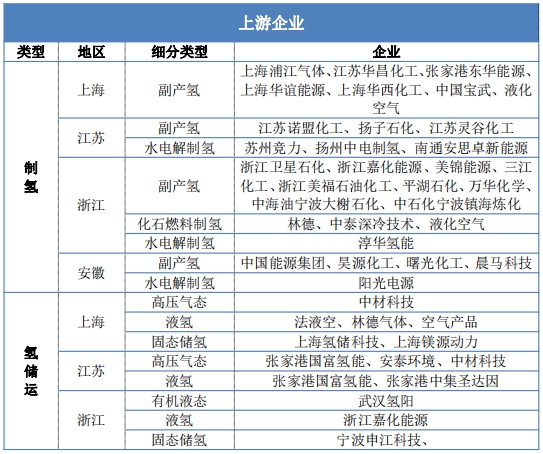 氫能產(chǎn)業(yè)有氫能源供給和燃料電池應(yīng)用兩條鏈,產(chǎn)業(yè)鏈上中下游分類方法眾多且標(biāo)準(zhǔn)不一,本文將制氫、氫儲運(yùn)作為上游,燃料電池系統(tǒng)、相關(guān)零部件及檢測作為中游,汽車、船舶、鋼鐵工業(yè)等應(yīng)用以及加氫站建設(shè)作為下游。(羅列企業(yè)可能不全,僅供參考)