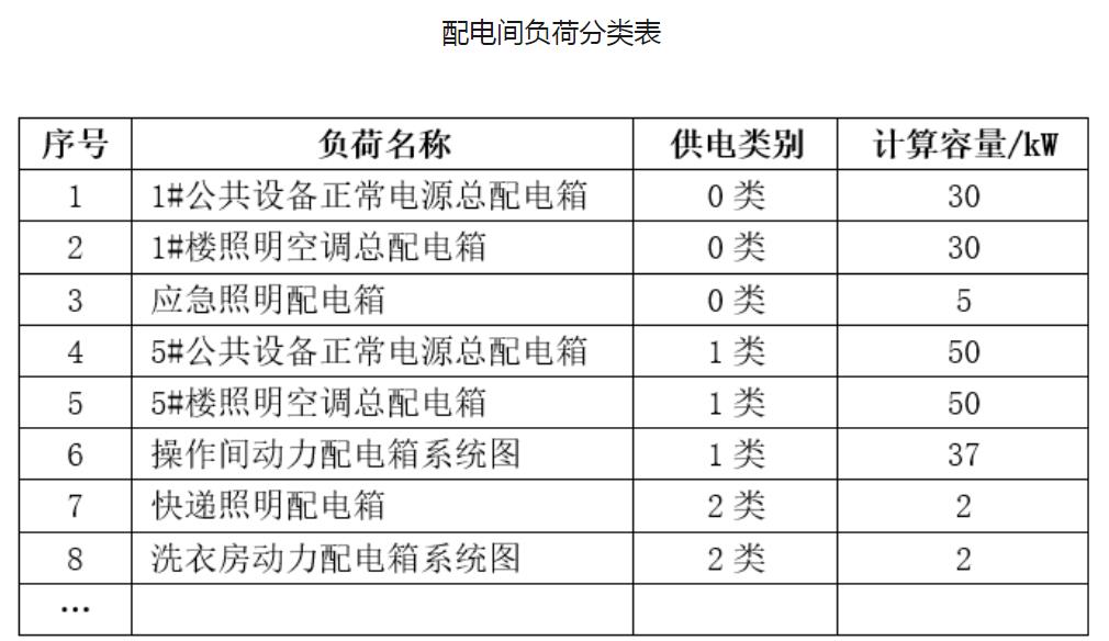統(tǒng)計各配電間的負(fù)荷分類情況如下: