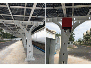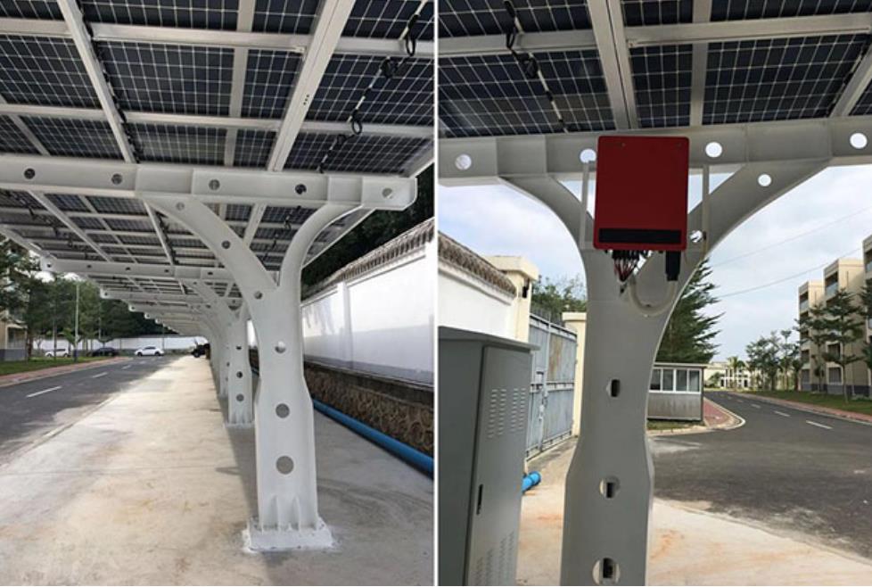 光伏區(qū)總裝機容量4.32MW,安裝高效單晶360Wp組件12000塊。分散在建筑屋頂和一體化光伏車棚上。