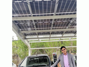 太陽(yáng)能頂三面都安裝了太陽(yáng)能板!≮w桂華 攝