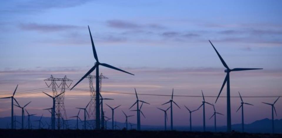 位于美國(guó)南加利福尼亞州棕櫚泉附近的風(fēng)能發(fā)電設(shè)備(新華社)