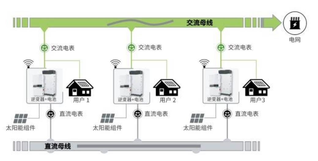 在一些國家,住宅不允許賣電進(jìn)入電網(wǎng)(防逆流),這導(dǎo)致多個(gè)住宅之間無法共享電力。直流母線供電系統(tǒng)可以解決這一問題。