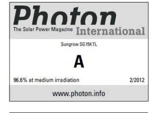 “電氣元件中使用優(yōu)質(zhì)薄膜電容器也意味著使用壽命的延長,內(nèi)部設計緊湊、布局分明,拓撲結(jié)構(gòu)帶來了非常高的效率,在兩路光伏對稱輸入運行時的最大轉(zhuǎn)換效率達97.9%,在電壓和功率全范圍內(nèi)保持高度穩(wěn)定……,是非常優(yōu)良的逆變器機型”。這是Photon的測評報告對該產(chǎn)品作出的總體評價。