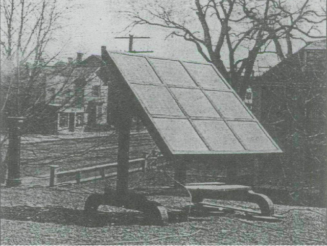 上圖:George的第一塊太陽能電池板,于 1905 年展示。資料來源:Technical World Magazine 11, nr.4,1909 年 6 月。