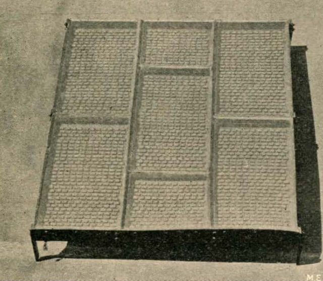 上圖:George Cove的第三個太陽能電池陣列的一塊太陽能電池板,表面玻璃蓋已拆除。資料來源:“利用陽光”,René Homer,Modern Electrics,Vol。II, No.6, 1909 年 9 月
