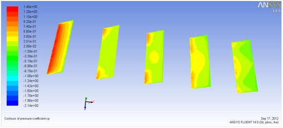 國內外對光伏結構抗風問題的研究比較少,其風載壓力系數一般是參考建筑結構的, 這對光伏結構的實際情況有差別。又由于光伏結構的形體比較特殊,難以確定其風壓分布情況。為了準確確定光伏結構的風壓分布情況,保威利用FLUENT軟件進行風洞模擬, 確定它的風壓分布及規(guī)律, 進而得到定光伏結構的風載壓力系數。