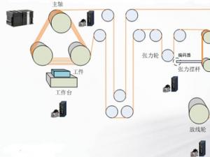 多線切割機對于控制系統(tǒng)的可靠性和實時性要求較高,為保證加工質(zhì)量,需要對切割過程中的鋼絲張力進行控制。準確控制張力值,減小張力的波動是多線切割機的一項關鍵技術(shù),對于提高加工質(zhì)量及切割過程中不斷線以及提高設備的可靠性具有重要意義。在本項目中,采用歐姆龍NJ501型控制器,通過EtherCAT總線連接多套伺服進行同步控制,有效地減少了張力的波動。